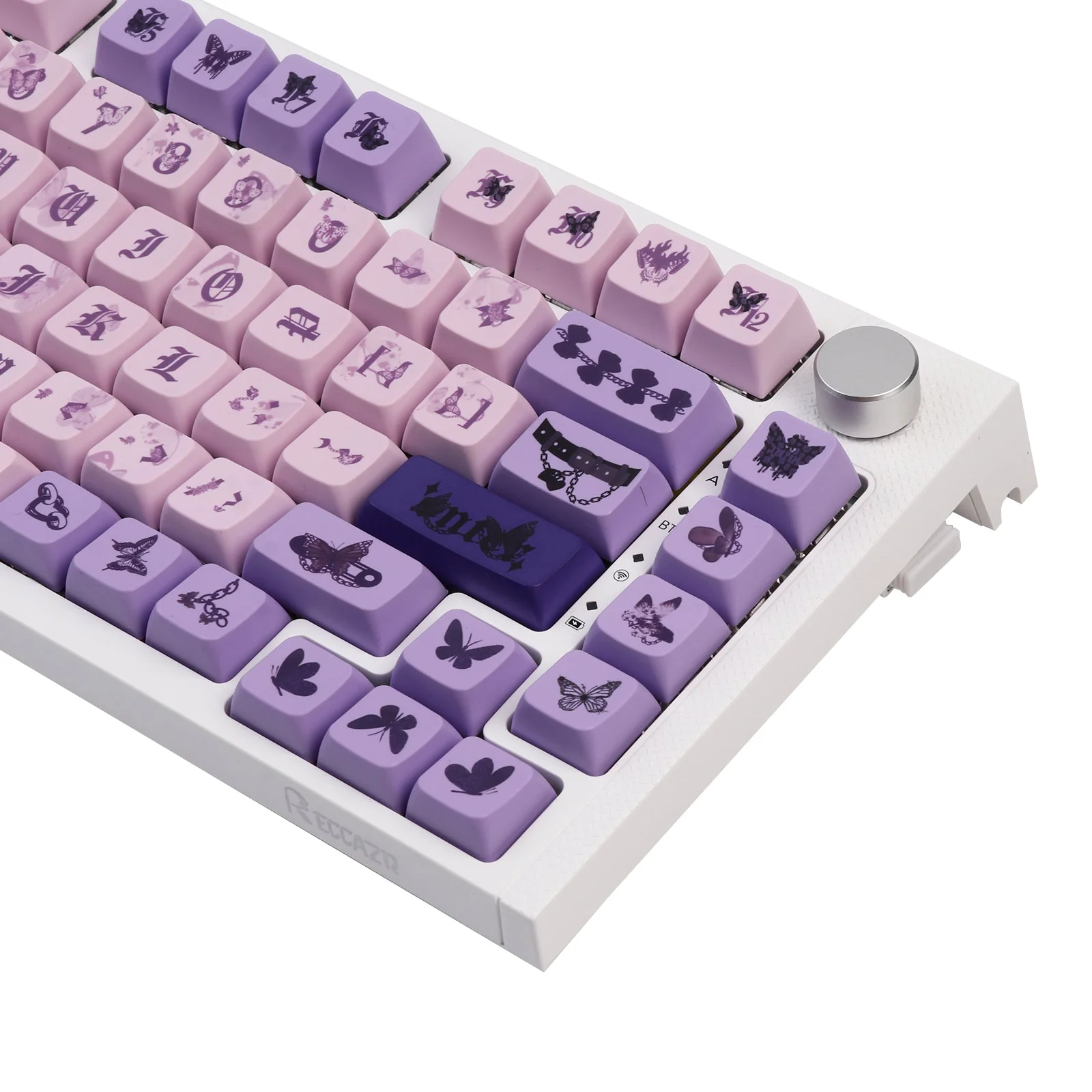 Transform your keyboard into a captivating masterpiece with the EPOMAKER Butterfly Keycap Set. Inspired by the beauty of butterflies, each keycap showcases intricate and mesmerizing butterfly designs in stunning shades of purple. Crafted with high-quality materials, these keycaps offer a comfortable typing experience while adding a touch of elegance to your keyboard. With compatibility for most mechanical keyboards, the Purple Butterfly Keycap Set allows you to express your unique style and create a visually stunning keyboard setup. Elevate your typing experience with the enchanting allure of the Purple Butterfly MDA Keycap Set.