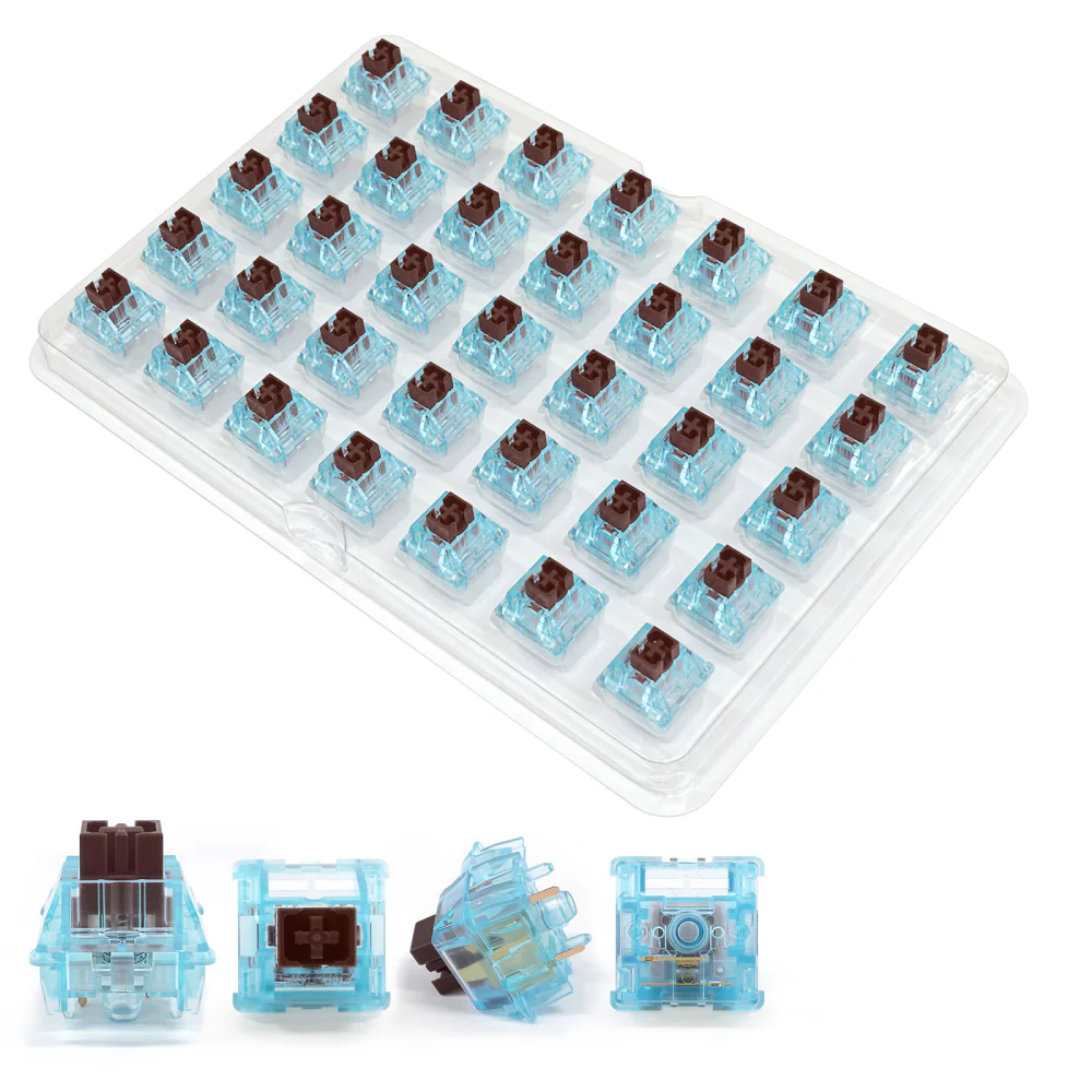 The Epomaker Iceberg switches are designed with different configurations for various demand. Epomaker Iceburg White/Silver/Yellow/Red Switch are linear type, better for gamers; regarding Epomaker Rose and Brown switch, they are more tactile, so you can fully feel the pleasure of typing and gaming