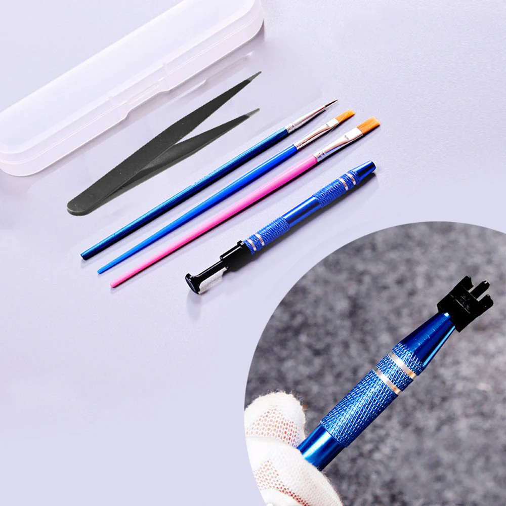 Each tool set comes with a high-quality 4-Claw Grabber and pointed-end tweezers. With the CNC technique and aluminium material, the grabber can hold the switch stem firmly. You might also need to mind keeping your hands clean when lubing.